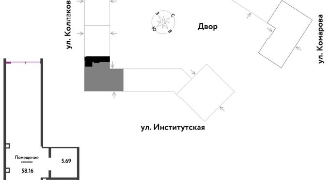 Расположение помещения свободного назначения в объекте свободного назначения на карте